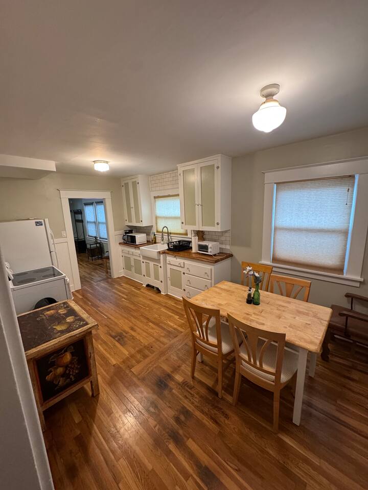 Fully furnished for your convenience. Enjoy central air and central heating operated by a NEST thermostat. Perfect for travelling professionals. Washer and dryer are located in the basement. Mattresses bought new, fitted with Tempur-Pedic technology, and placed on a platform bed frame. Each bed is fitted with duvet comforters and quality linens. We aim to provide quality sleep for our guests. The couch, located in the living room, slides out into a bed the size of a queen mattress. There is a 50” roku tv in the living room with active subscriptions to netflix and amazon prime. Linens, towels, pillows, and sheets are provided. The kitchen is stocked with cooking BASICS which includes pots, pans, toaster oven, microwave, silverware, dishware, etc.